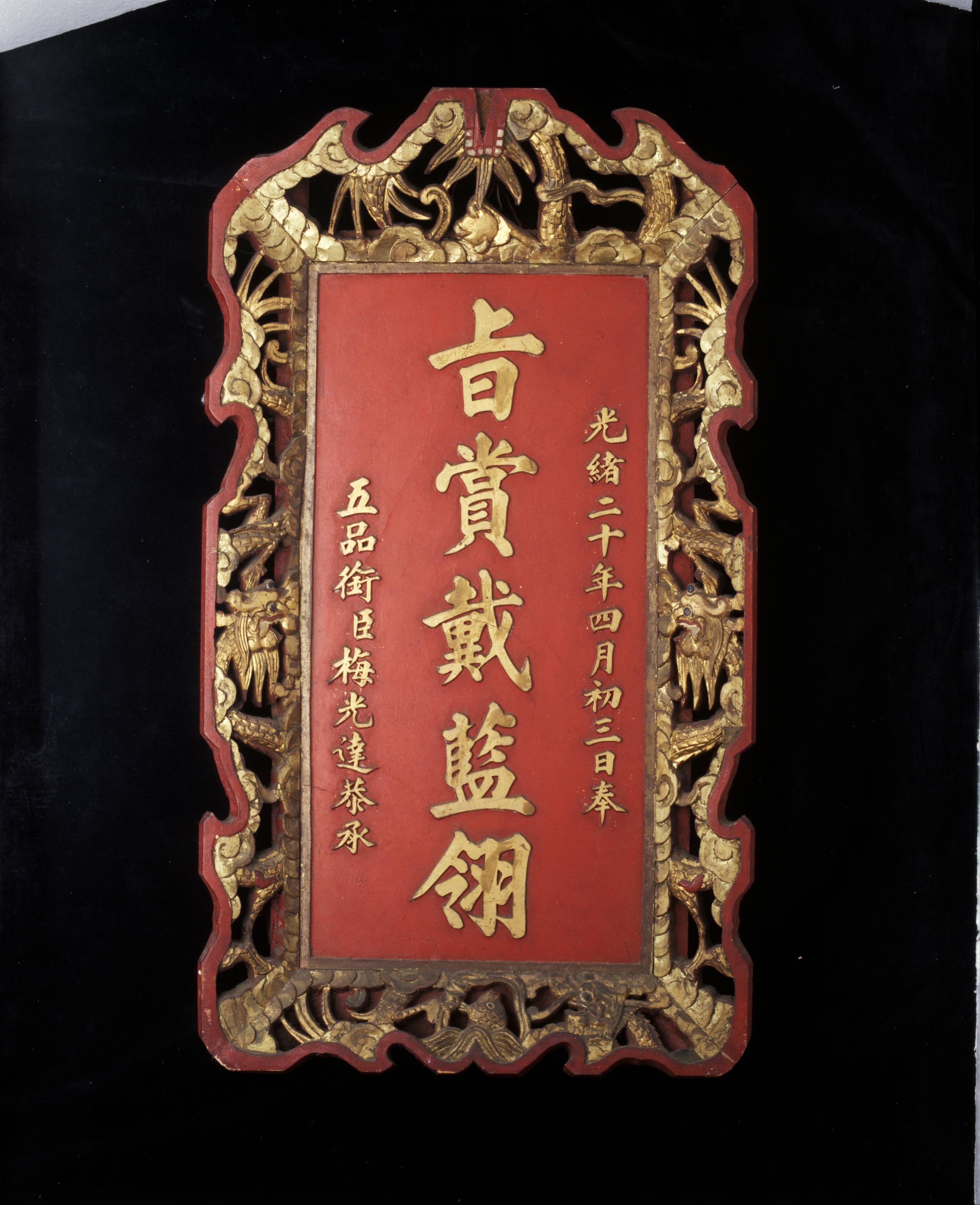 Plaque, Quong Tart, 1895