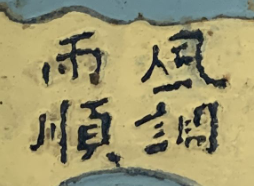 an auspicious phrase meaning harmony in nature and prosperity for the people.