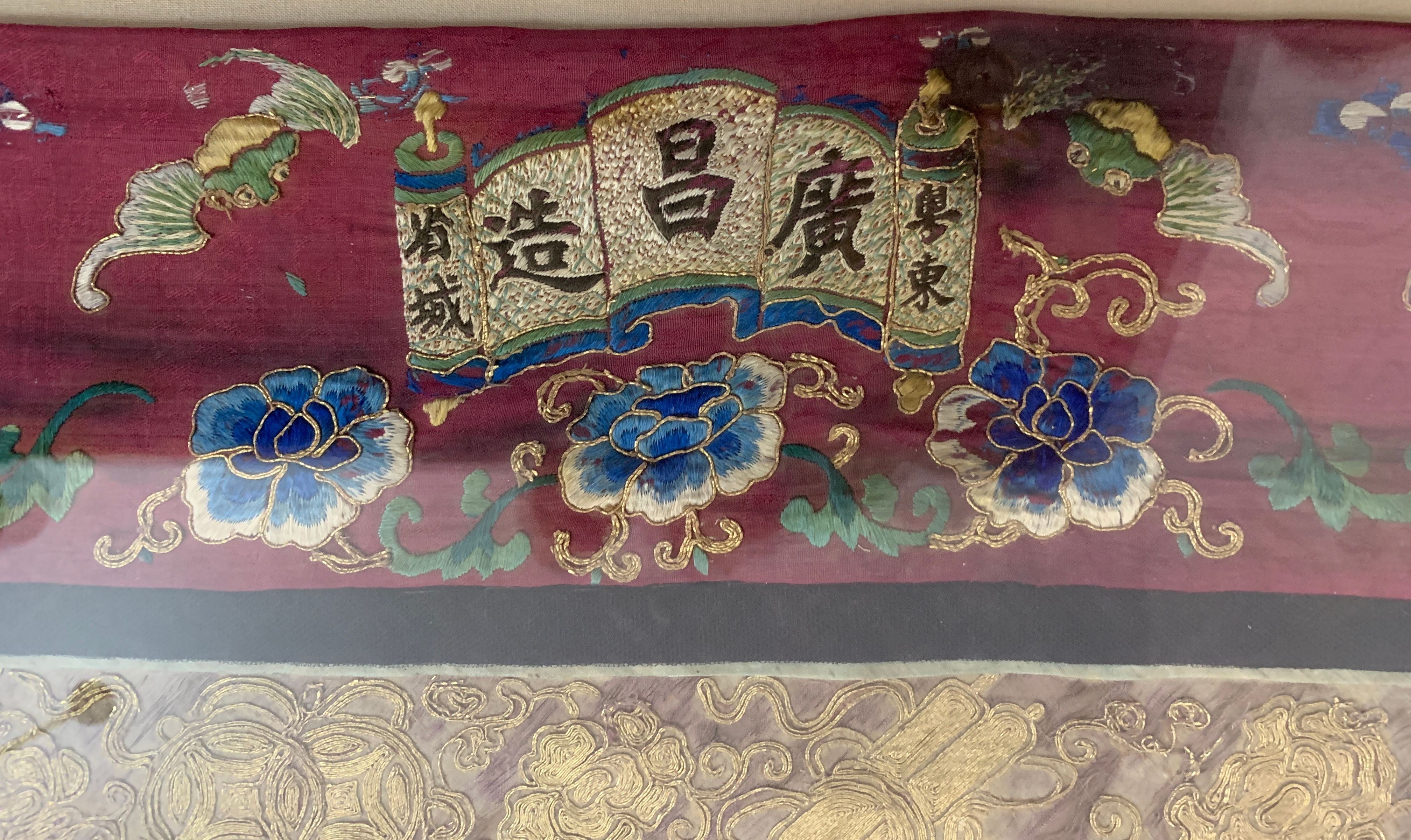 <p>"This banner was one of five banners gifted to the Beechworth Chinese community in recognition of their support of the Hospital and Benevolent Asylum in 1875, from the Carnival Committee. These banners had been purchased in China by a social envoy from Beechworth then presented to the Chinese community during the Beechworth Fine Arts Exhibition in May of that same year, by Donald Fiddes, President of the Ovens District Hospital."</p>