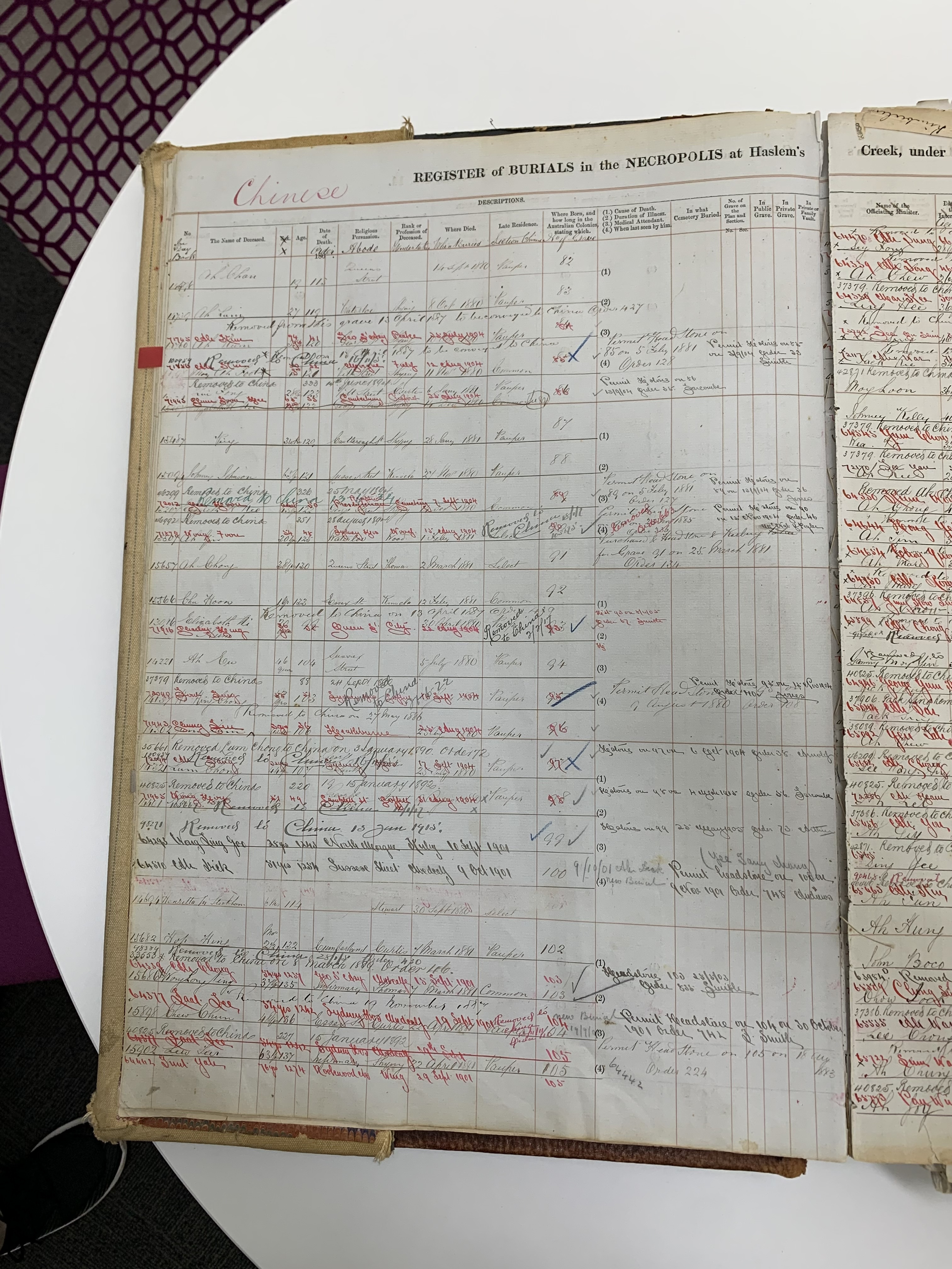 Burials book, Chinese Rookwood Cemetery