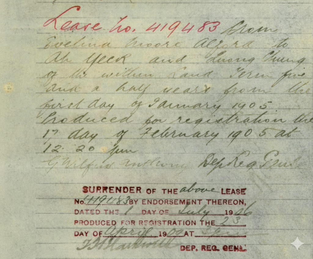 Title deed showing land leased to two Chinese men.